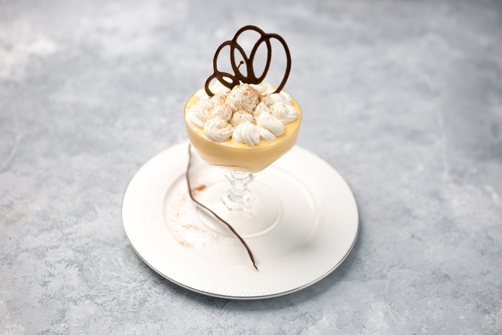 Elaborado con manjar de yemas hecho con leche, azucar, yema de huevo y esencia de vainilla, cubierto de merengue.